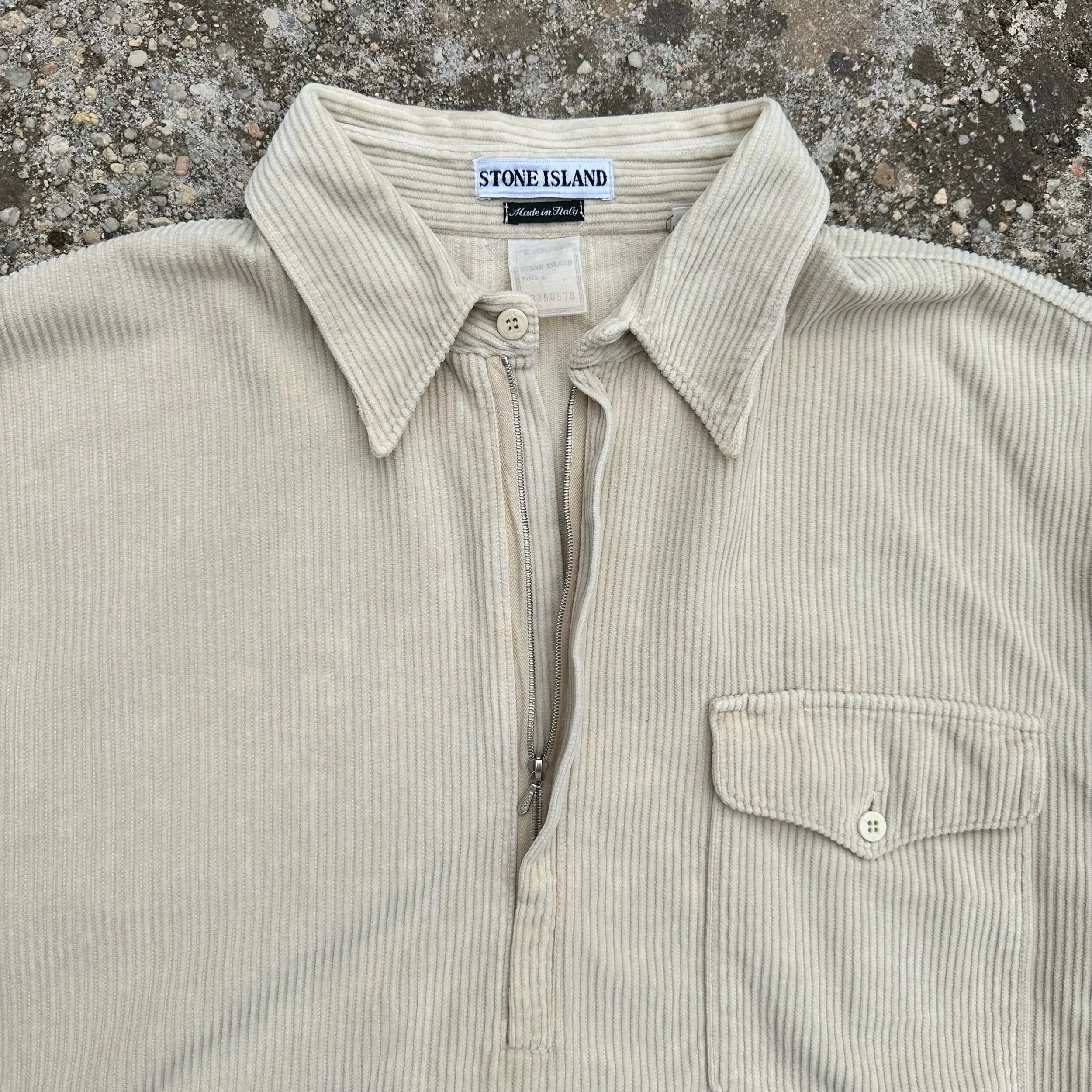 Iconic mid 90s piece with top quality construction. Soft jumbo corduroy fabric featuring anchor buttons throughout. A flap closure breast pocket and split hem. Complete with a stainless steel RiRi dagger zip.